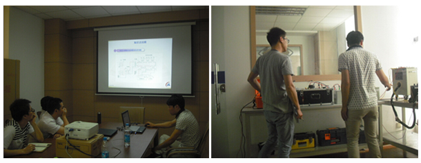 李工到達(dá)蘇州后,整體共用時(shí)3天,分別對(duì)互感器校驗(yàn)儀、電流互感器負(fù)荷箱、電壓互感器負(fù)荷箱、電流互感器、自升壓電壓互感器、雙調(diào)壓器控制箱為被試品進(jìn)行現(xiàn)場(chǎng)培訓(xùn)。因?yàn)槭亲鳛闄z測(cè)設(shè)備使用,客戶對(duì)設(shè)備的整體要求,尤其是測(cè)試精度的要求很高。因?yàn)槲夜镜脑O(shè)備質(zhì)量可靠,在現(xiàn)場(chǎng)表現(xiàn)效果非常好。并且操作簡(jiǎn)單方便,大大簡(jiǎn)化了操作流程和難度。贏得了現(xiàn)場(chǎng)客戶的一致好評(píng)!