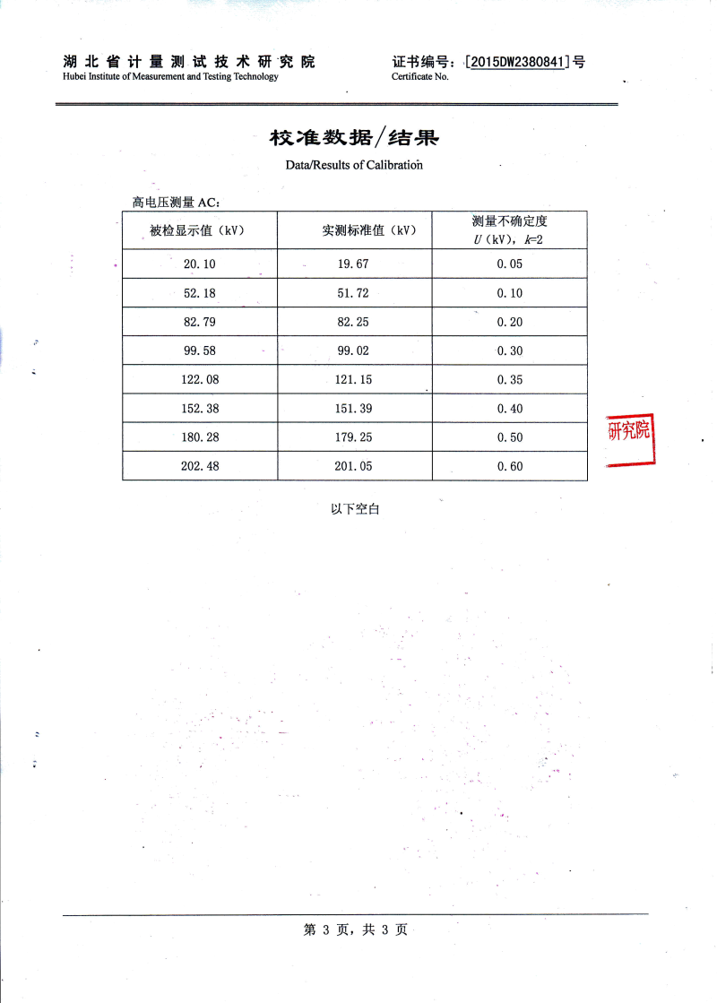 諧振電壓 0~1000kV
