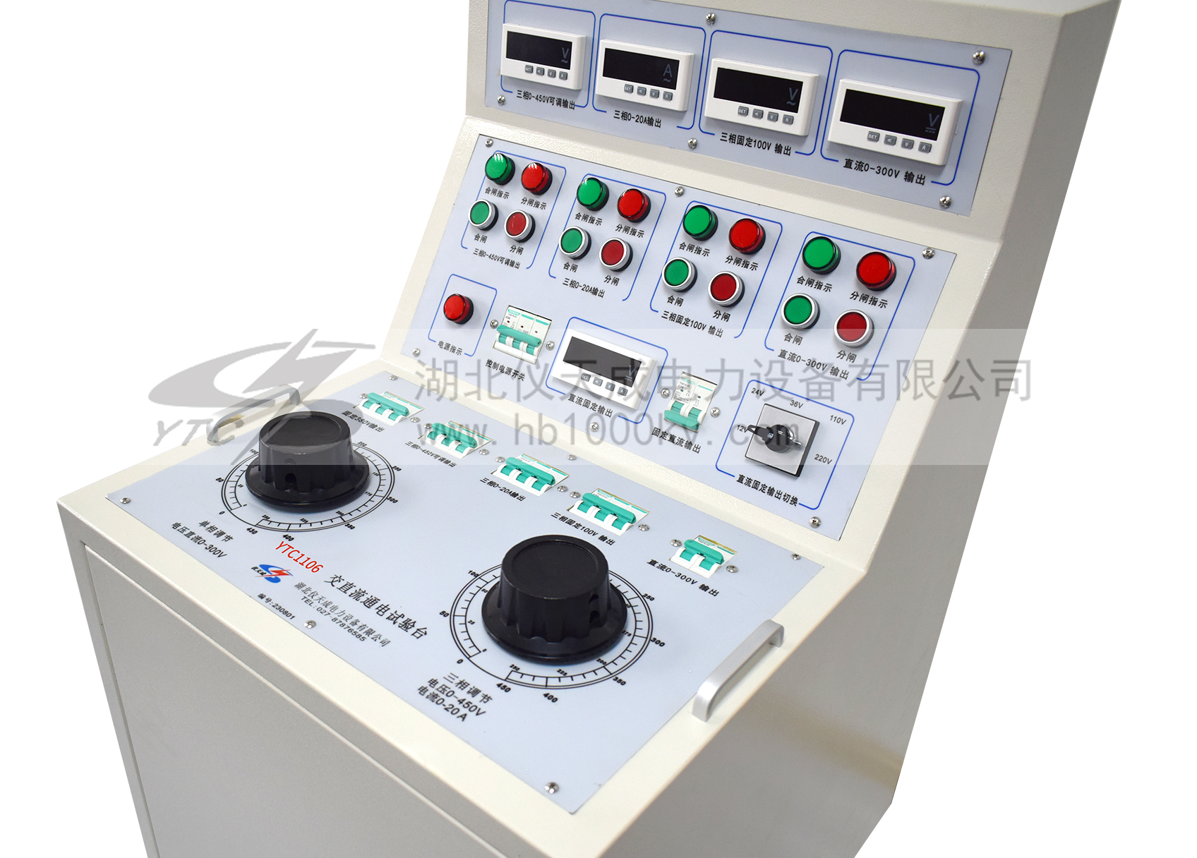1、三相AC100V輸出(固定值) 一組 2、三相AC 0 - 50A輸出(〈10V,可調(diào)值) 一組 3、交流操作電壓輸出 AC 0 – 420V,220V時(shí),電流小于10A 一組 4、直流操作電壓輸出24V.36Ⅴ.48Ⅴ.110Ⅴ.220Ⅴ 5、單相AC220V輸出(固定值,插座形式) 二組 6、三相AC380V輸出(固定值,接線柱) 二組 |