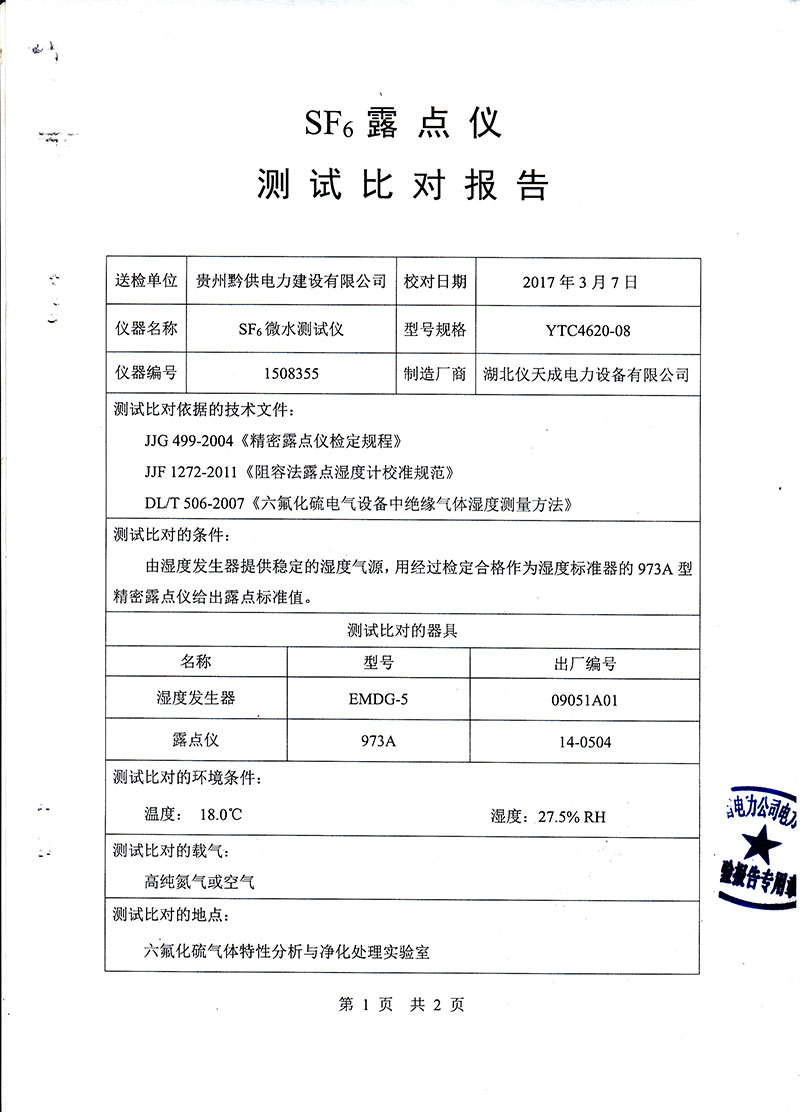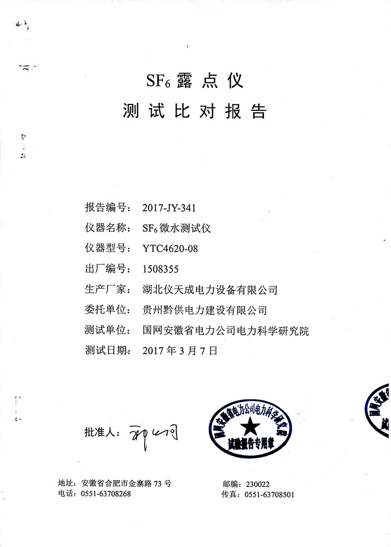 YTC4620-08 SF6微水測試儀采用英國ALPHA公司的AS3濕度傳感器,全量程內做到測量準確可靠,長期穩定性好,重復性好。