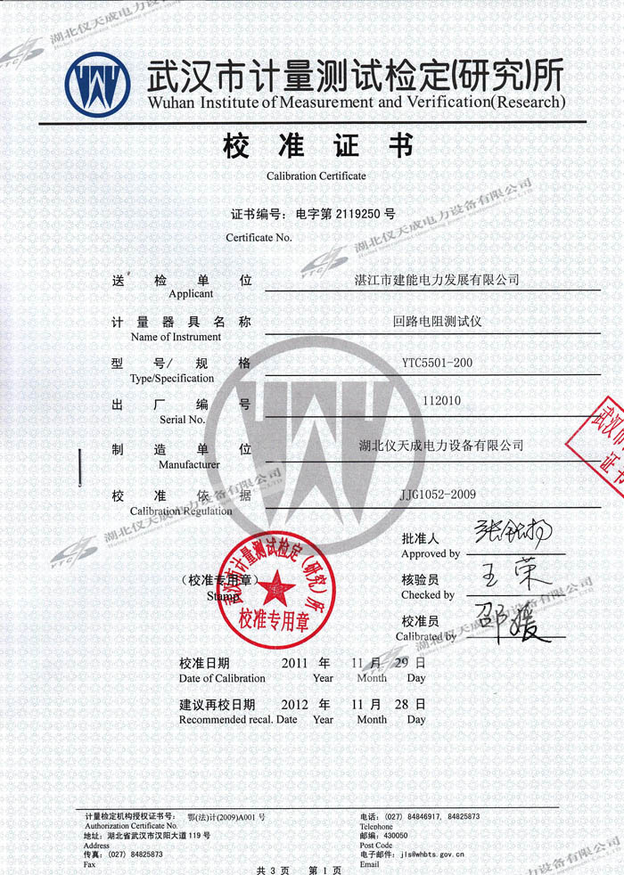 轉(zhuǎn)載:"YTC5501-200A回路電阻測試儀的資質(zhì)證書" 請注明來源于儀天成電力。 更多技術(shù)問題請致電儀天成電力客戶服務(wù):027-87876585,技術(shù)部專線:027-87876585,在線客服:719388481