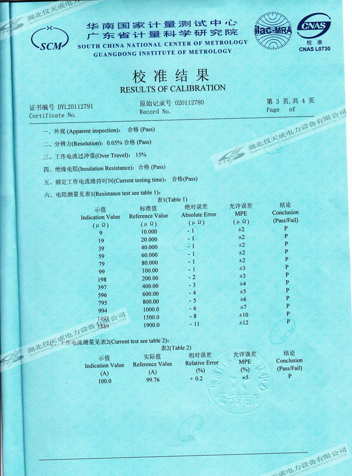 轉載:"YTC5501-100A 回路電阻測試儀的資質證書" 請注明來源于儀天成電力。 更多技術問題請致電儀天成電力客戶服務:027-87876585,技術部專線:027-87876585,在線客服:719388481